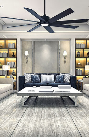 Installation or upgrade of ceiling fans with dedicated wall controllers for precise speed and direction management at the touch of a button.